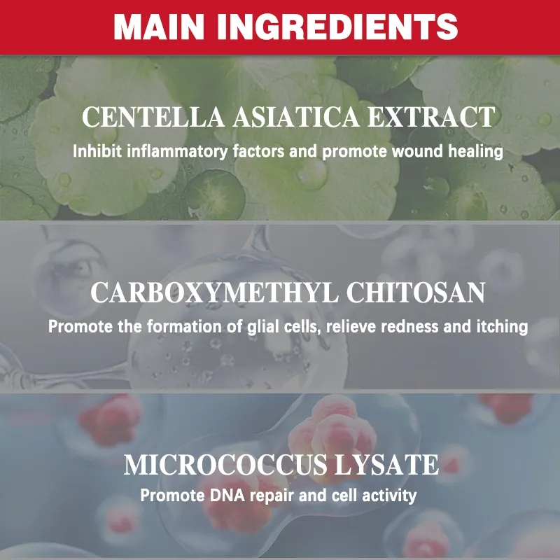 | Main Ingredients | CENTELLA ASIATICA EXTRACT; CARBOXYMETHYL CHITOSAN; MICROCOCCUS LYSATE |